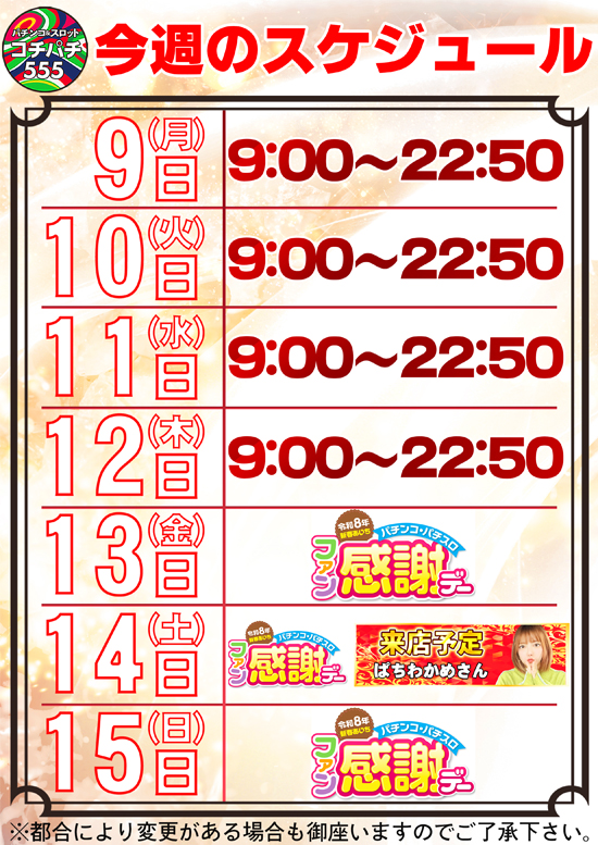 ↓↓直近の営業予定コチラ↓↓